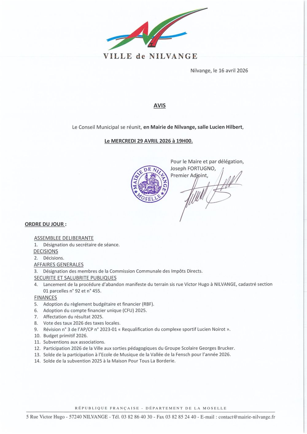 Avis Conseil Municipal du 29 avril 2026
