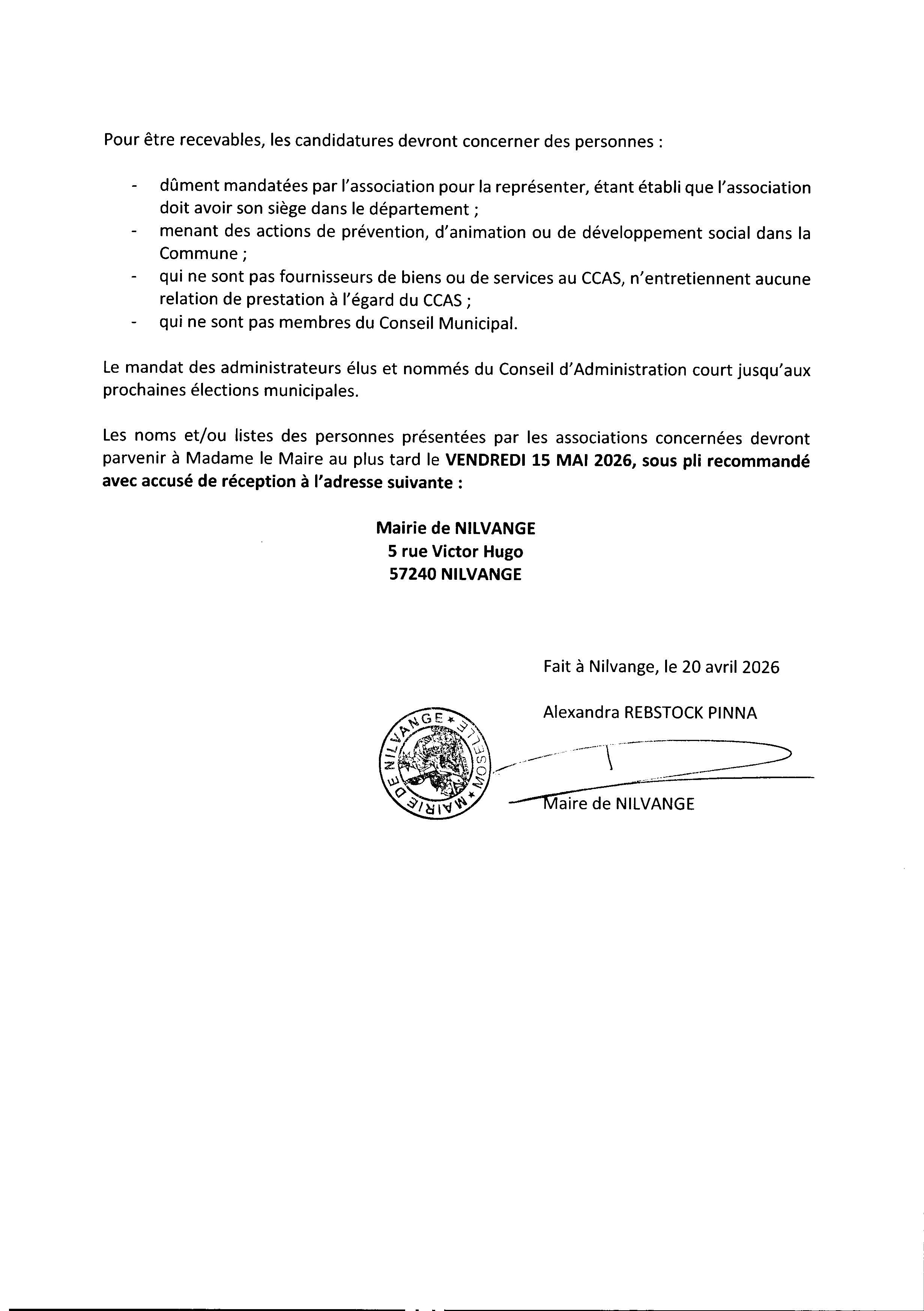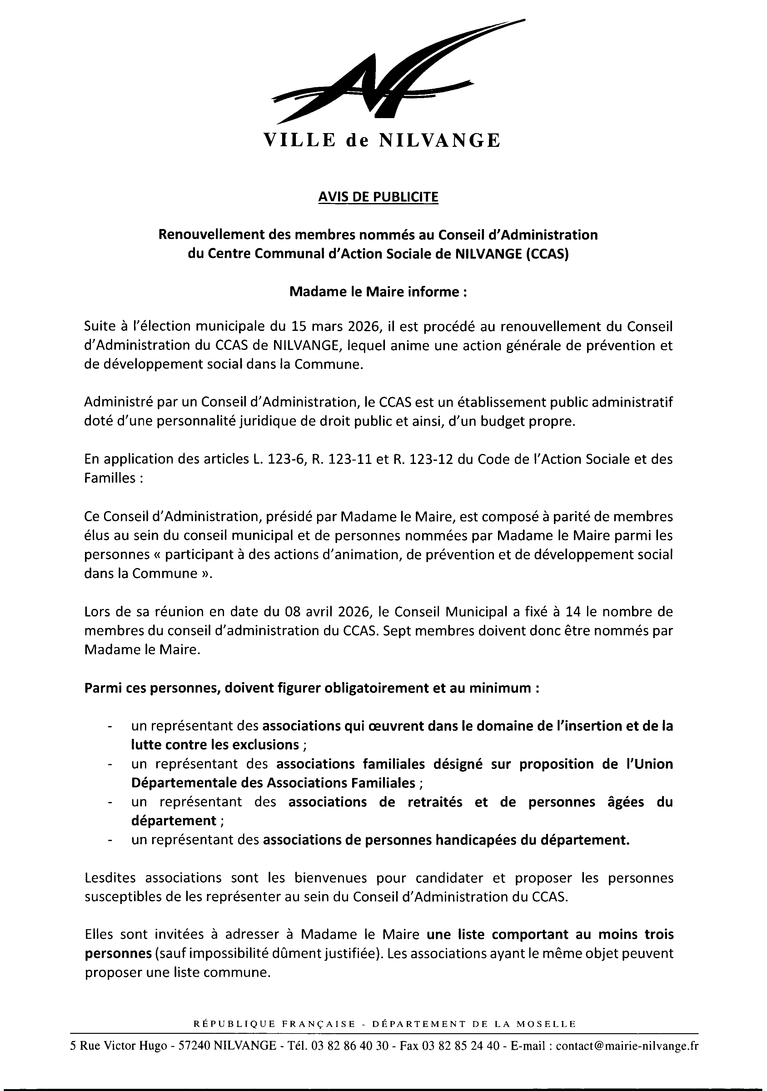 Avis de publicité : renouvellement des membres du CCAS