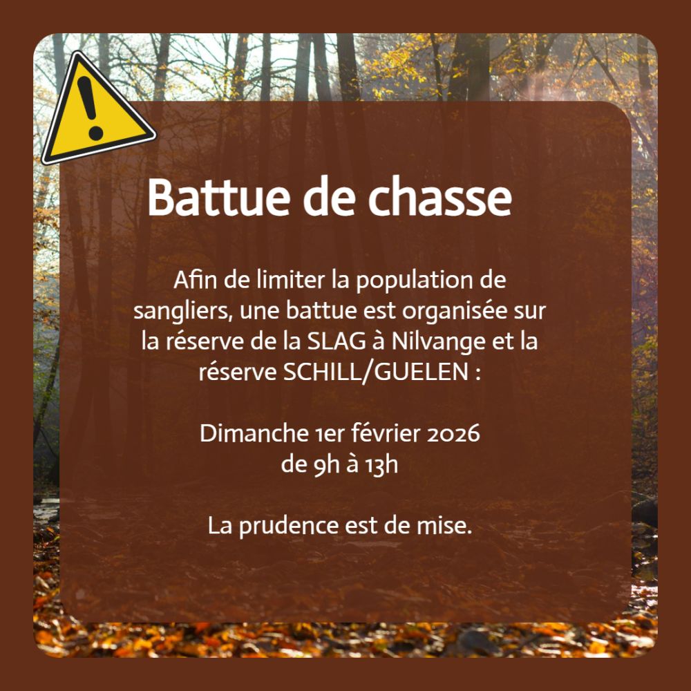 Afin de limiter la population de sangliers, une battue est organisée sur les réserves SLAG à Nilvange et SCHILL/GUELEN.