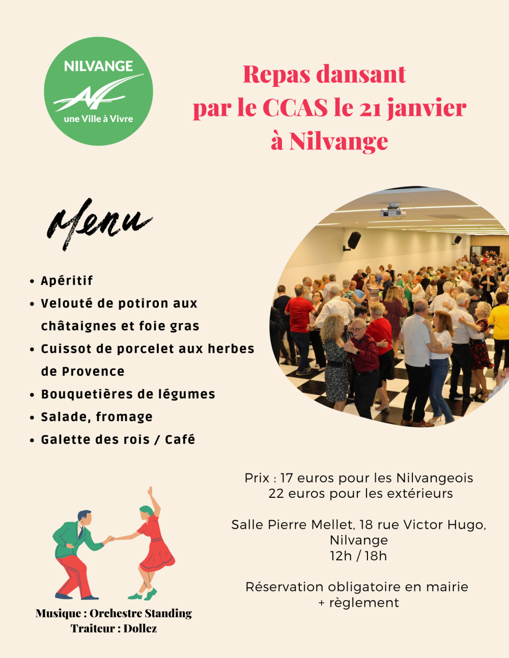 Repas dansant organisé par le CCAS de la ville de Nilvange, mercredi 21 janvier, salle Pierre Mellet