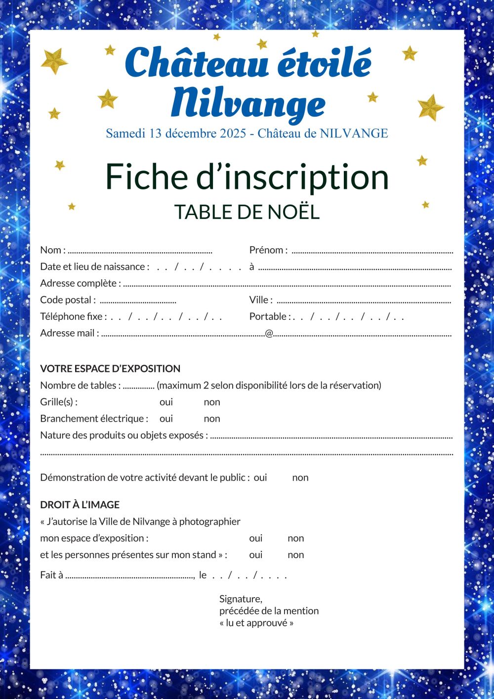 Fiche d'inscription des exposants à la TABLE DE NOËL